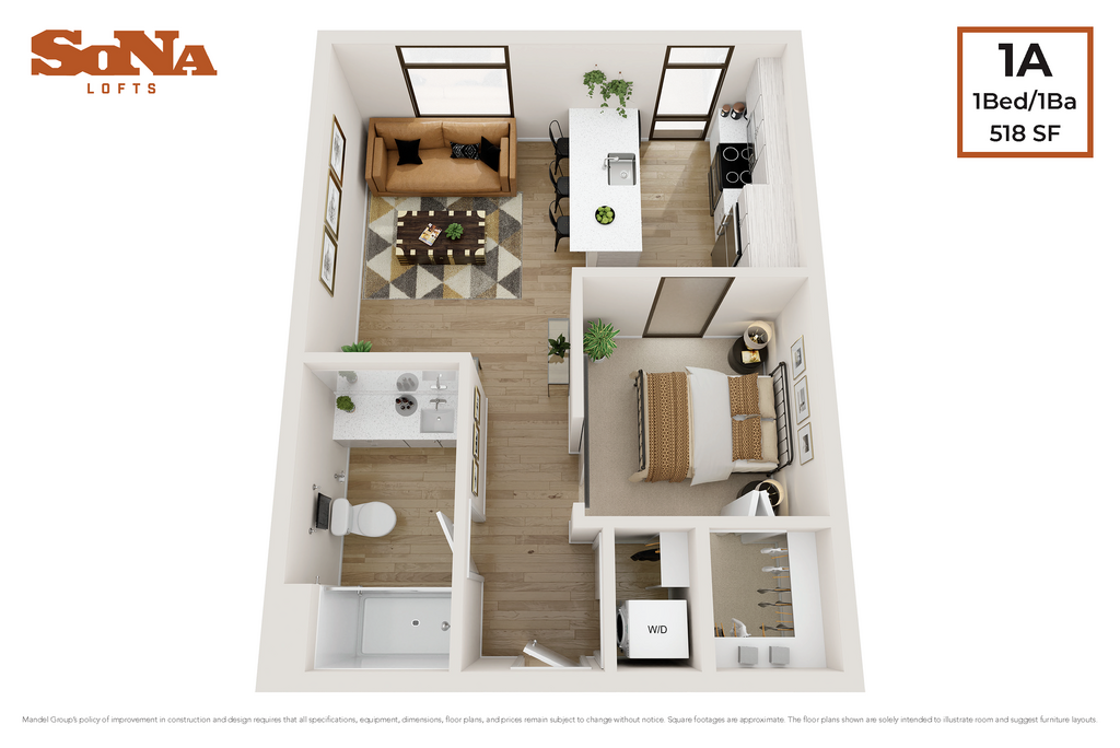 Apartment Model: 1AFrom $1,5031 Bedroom, 1 Bath, 518 sq ftAvailable Now![]()