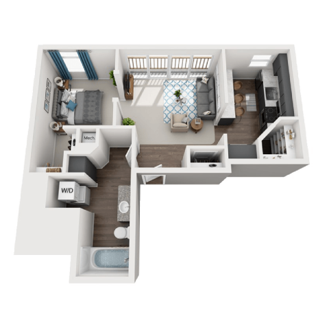Studio, 1 Bath, 516 sq ftPlus FeesAvailable NowModel Gallery