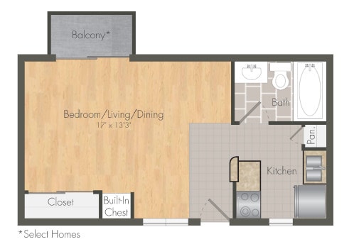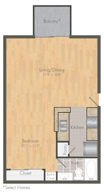 Studio, 1 Bath, 450 sq ftAvailable NowLargest StudioThis is the largest Studio at this PropertyModel Gallery