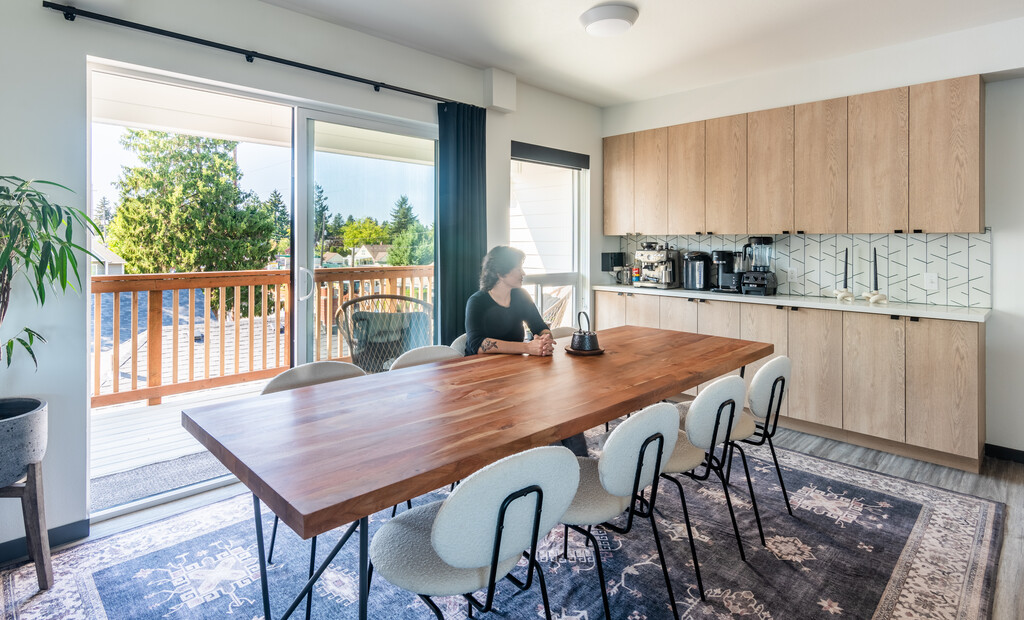 Society 62 is a thoughtfully designed co-living community in Portland's Rose City Park neighborhood. Spread across three fully furnished floors, each "household" features a chef-style kitchen, communal dining area, media lounge, and its own private patio or balconyideal for both socializing and relaxing. Residents enjoy private bedrooms (some with ensuite bathrooms) and share modern, open-concept living spaces that foster connection and convenience.