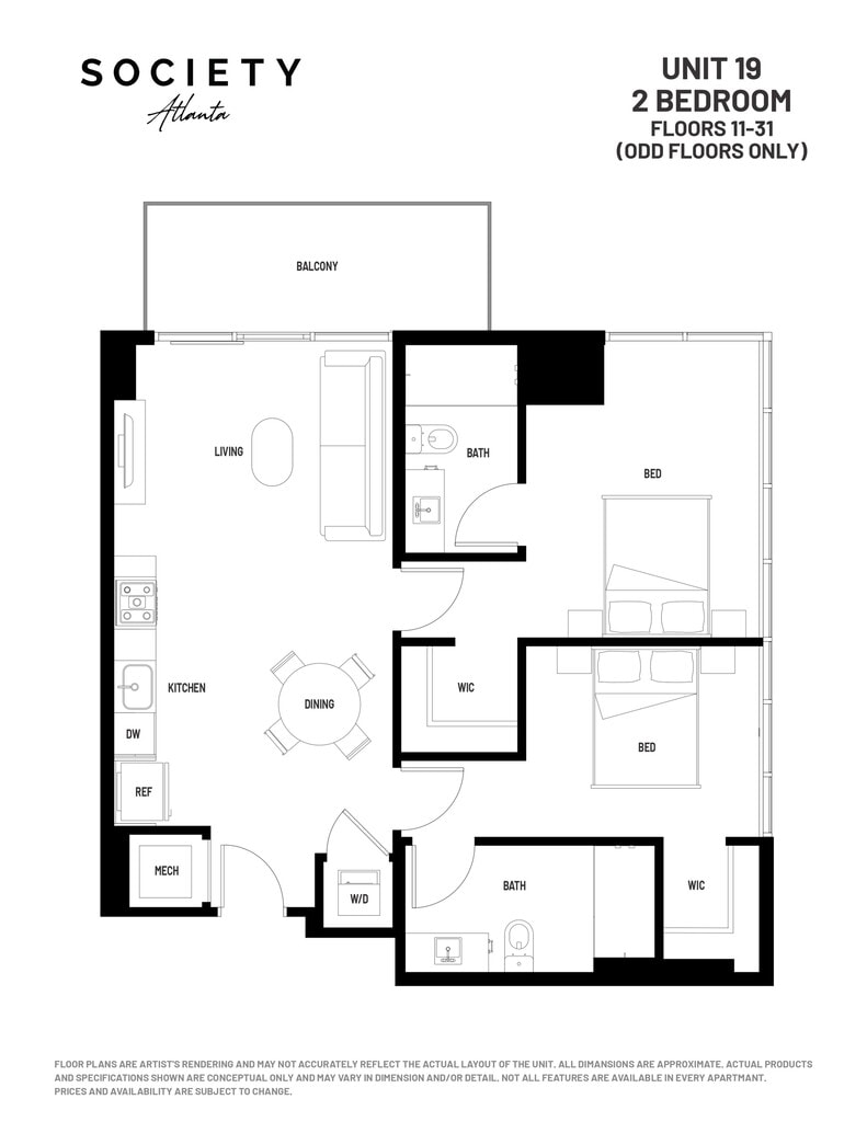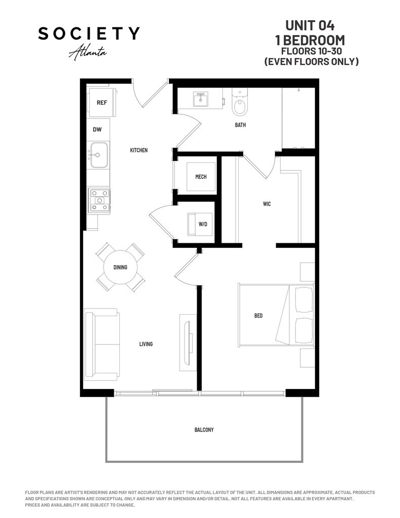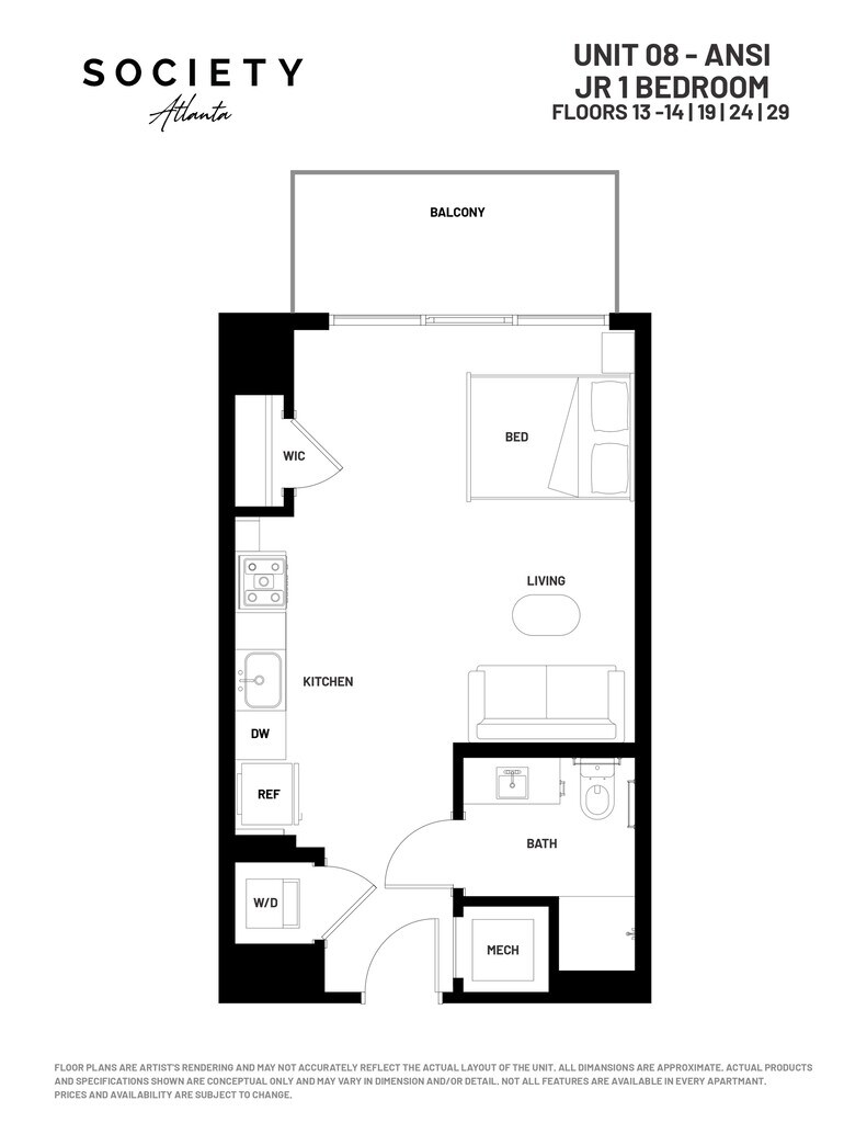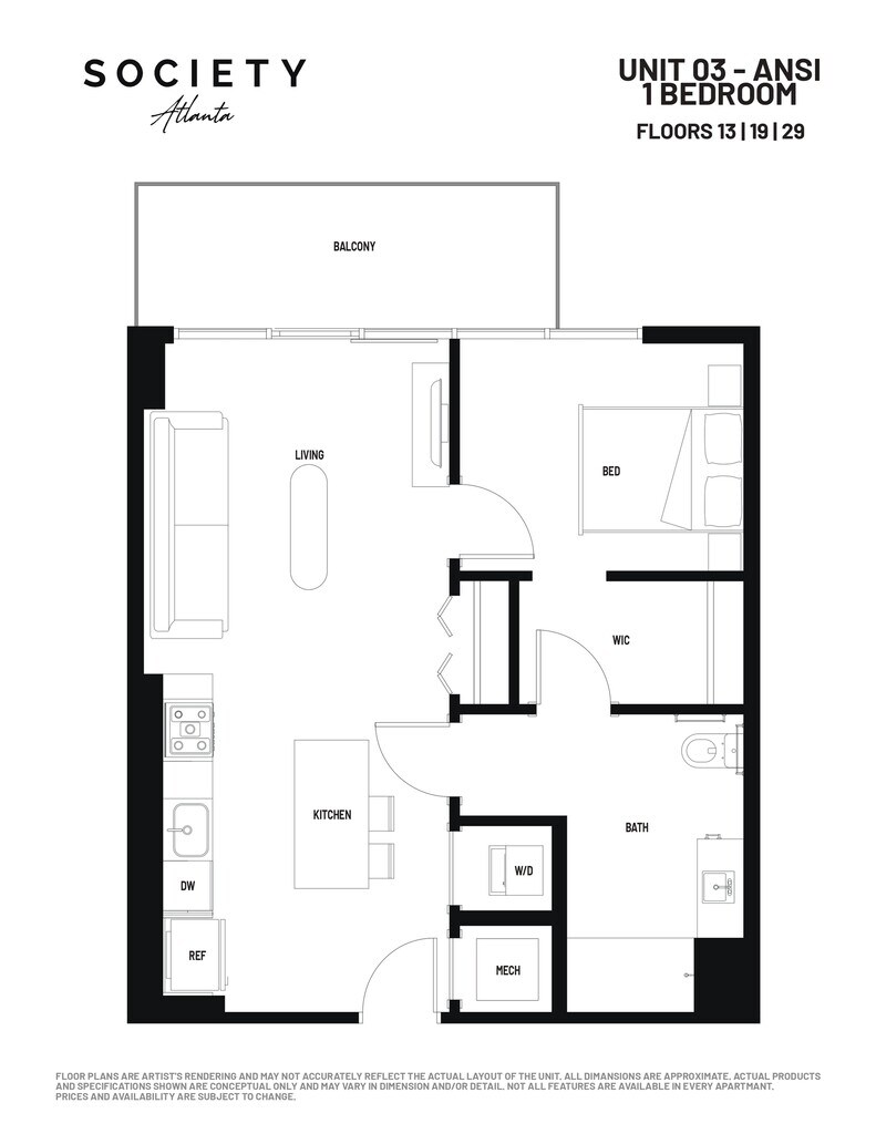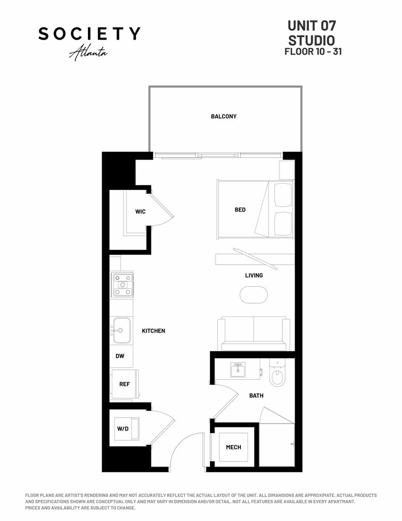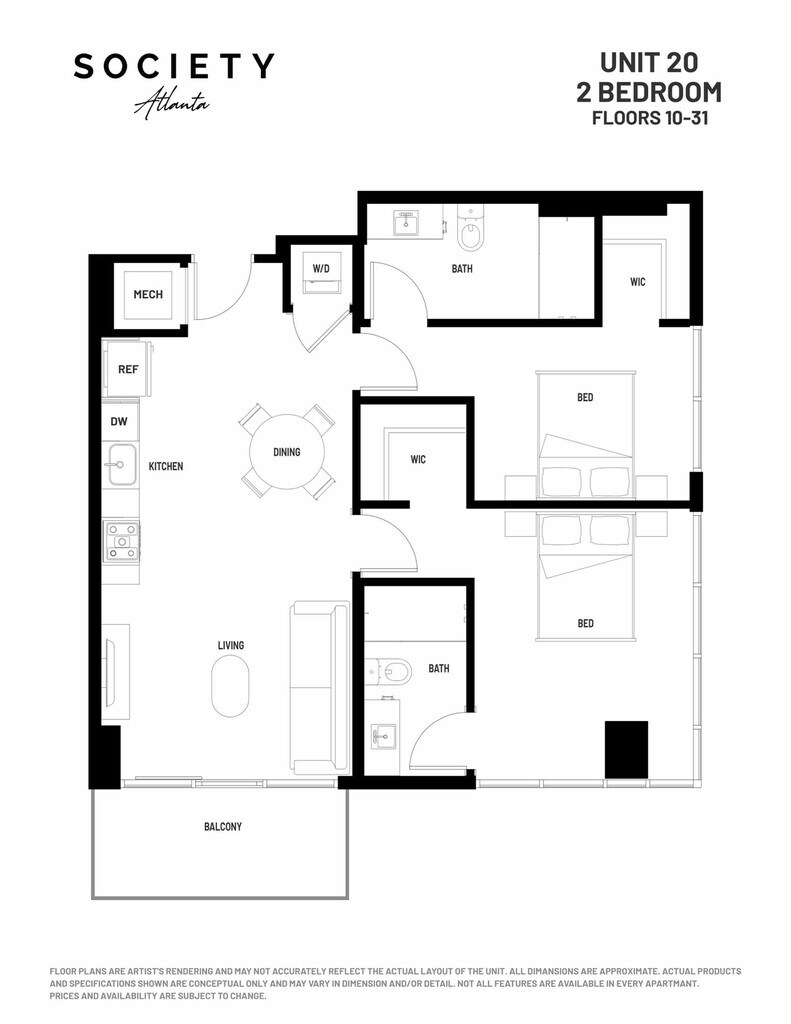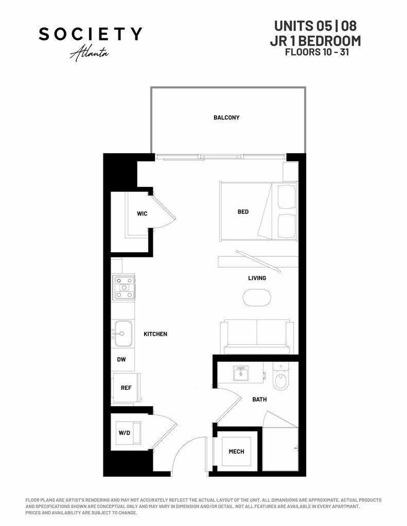 Society Atlanta offers Studio to 3 Bedroom apartments starting from $1,445 and having 424–1,286 sq ft. Here is the current pricing and availability: