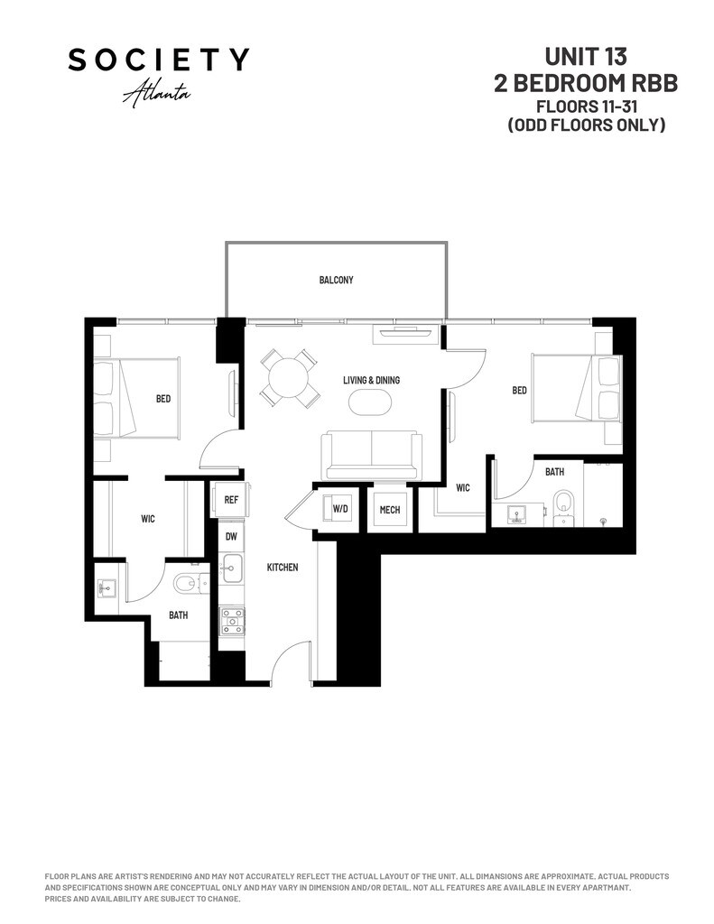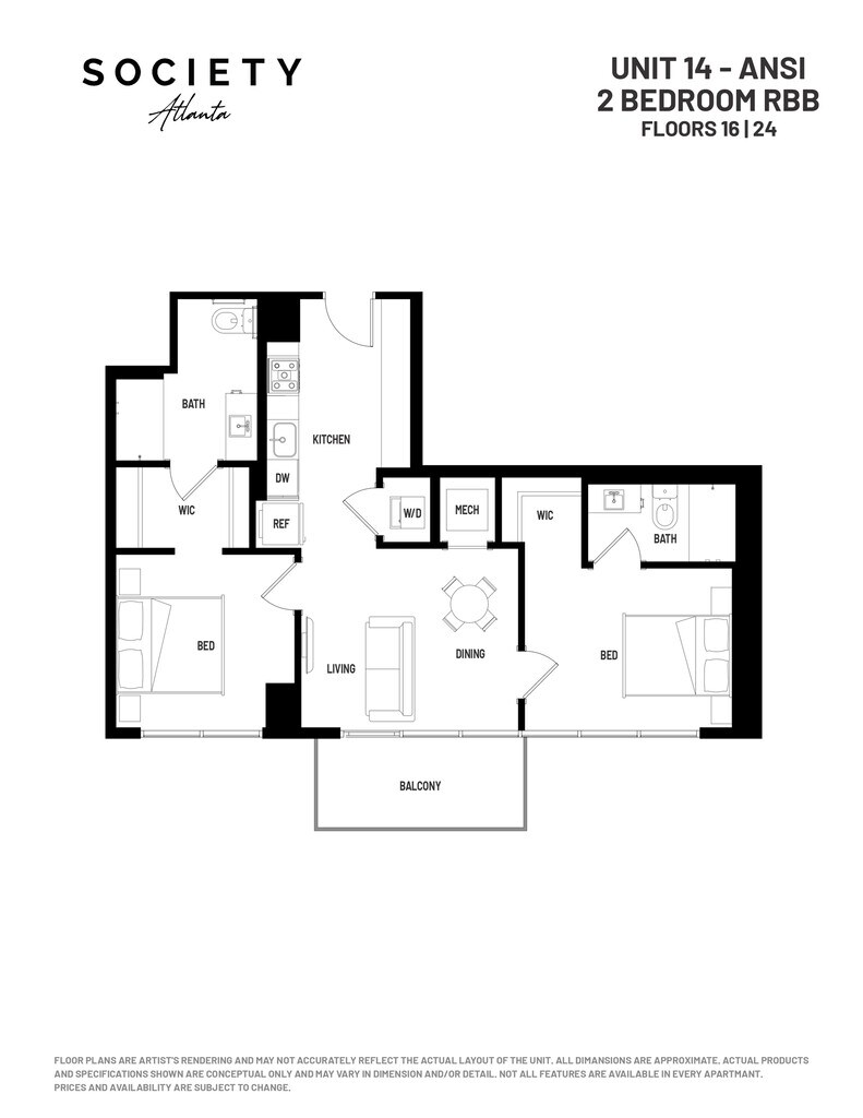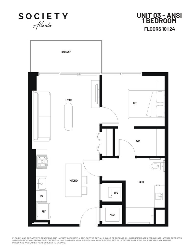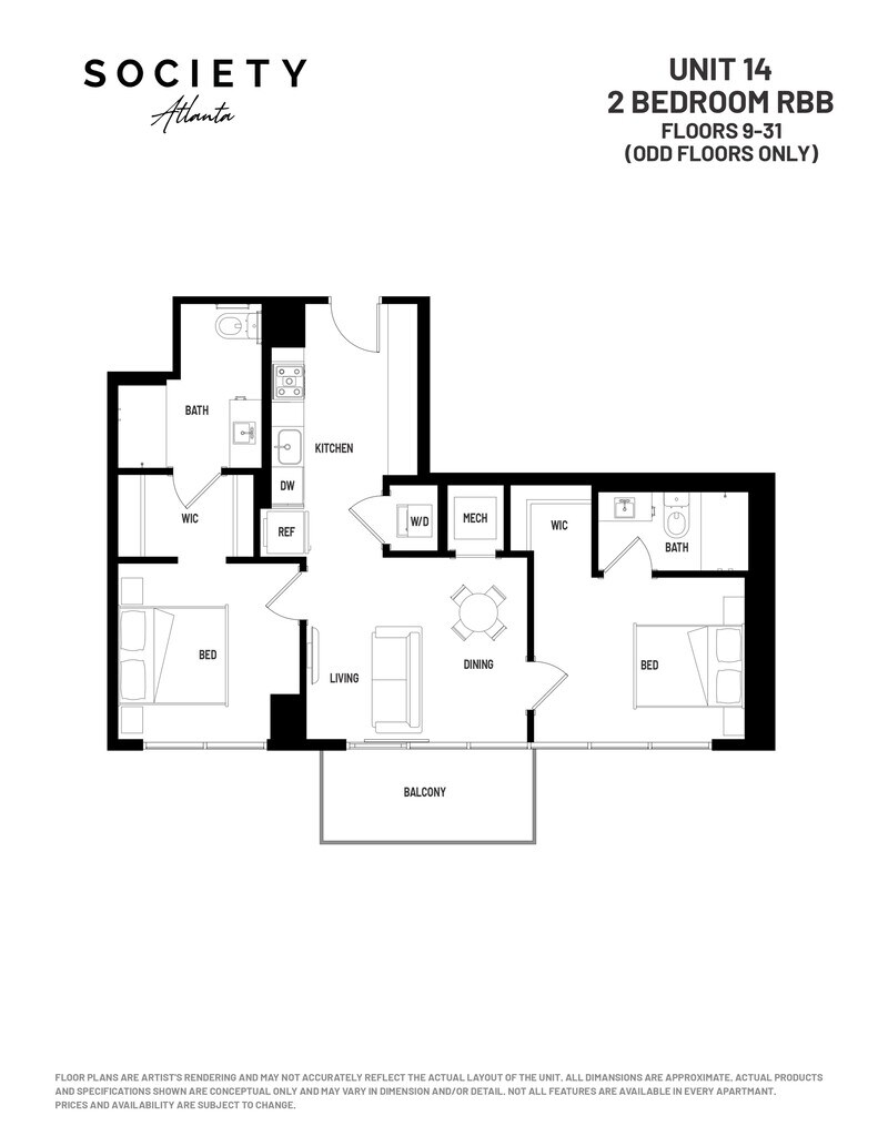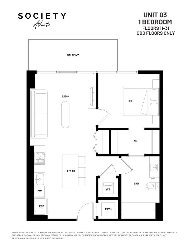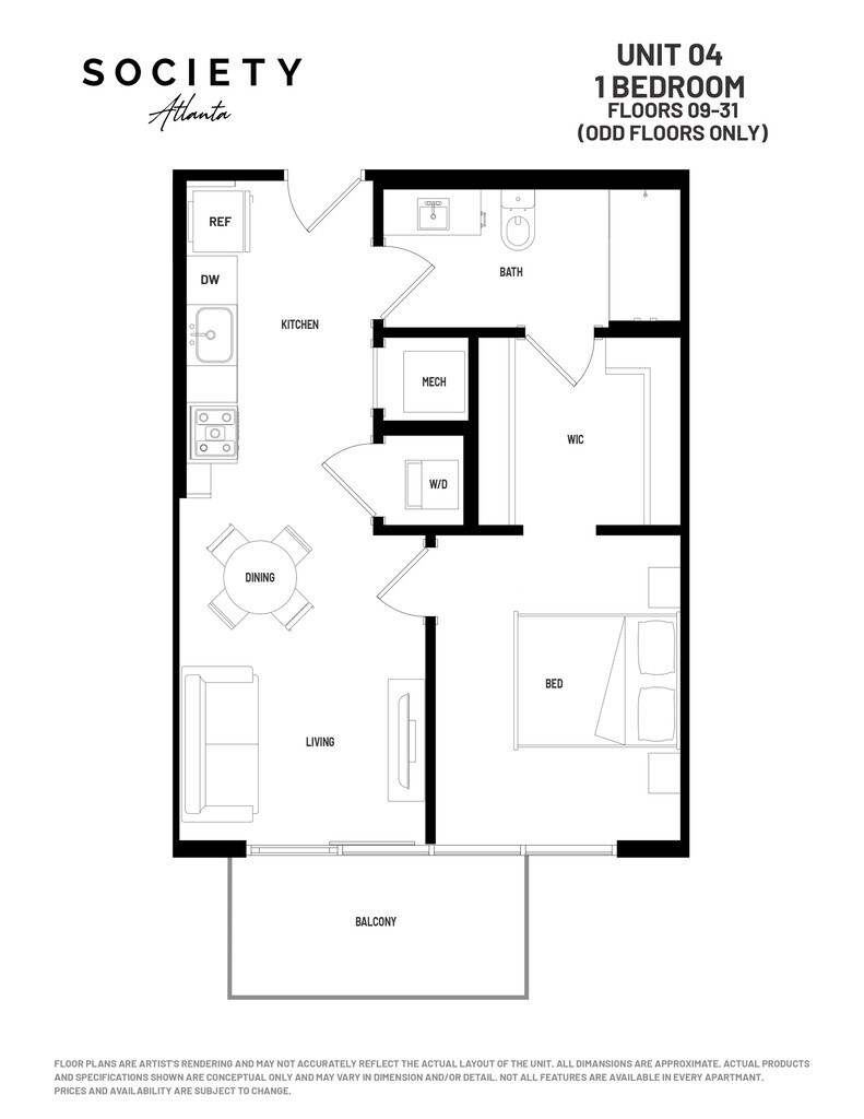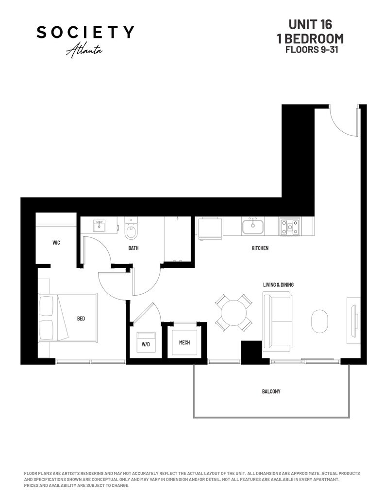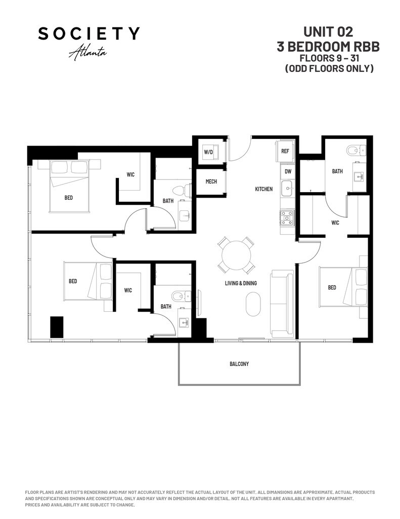 Society Atlanta offers Studio to 3 Bedroom apartments starting from $1,445 and having 424–1,286 sq ft. Here is the current pricing and availability: