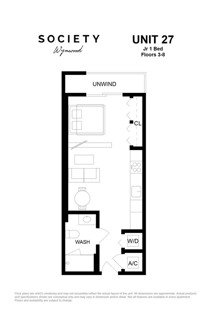 Society Wynwood offers Studio to 3 Bedroom apartments starting from $1,680 and having 348–1,430 sq ft. Here is the current pricing and availability: