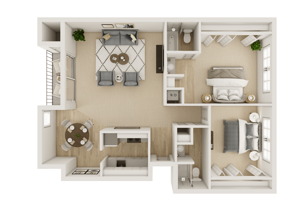 2 Beds, 2 Baths, 1010 sq ftAvailable NowModel Gallery