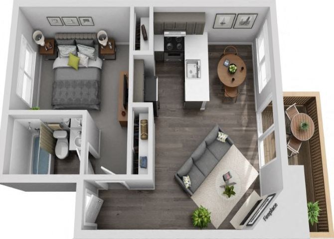 1 Bed, 1 Bath, 590 sq ftModel Gallery