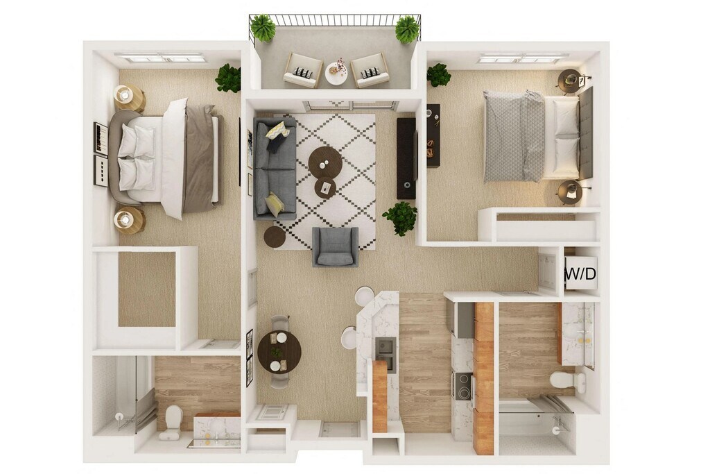 2 Beds, 2 Baths, 1105 sq ftAvailable NowLargest 2 BedroomThis is the largest 2 Bedroom at this PropertyModel Gallery