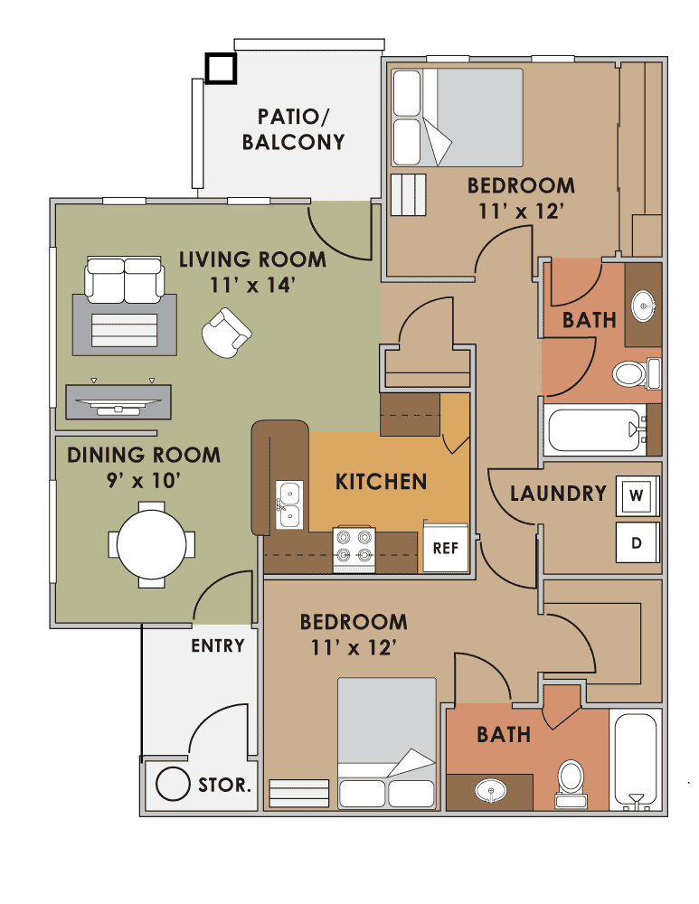 2 Beds, 2 Baths, 1006 sq ftAvailable NowModel Gallery