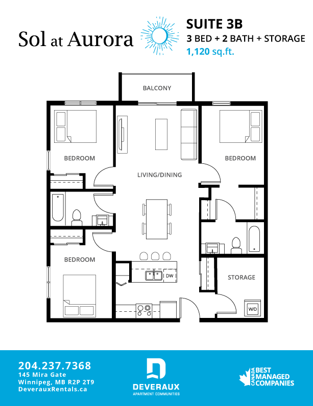 3 Bedroom, 2 Bathroom + Storage - Floorplan 2 Apartment Unit: 135-301Apartment Model: 3 Bedroom, 2 Bathroom + Storage3 Bedroom, 2 Bath, 1120 sq ftAvailable December 1, 2025