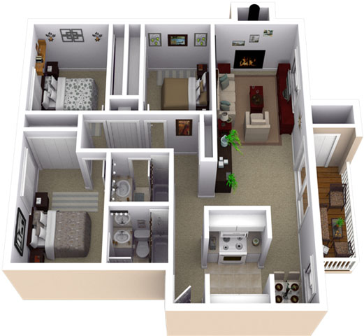 3 Beds, 2 Baths, 1500 sq ftModel Gallery