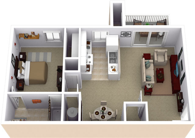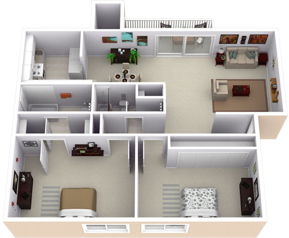 2 Beds, 1 Bath, 860 sq ftModel Gallery
