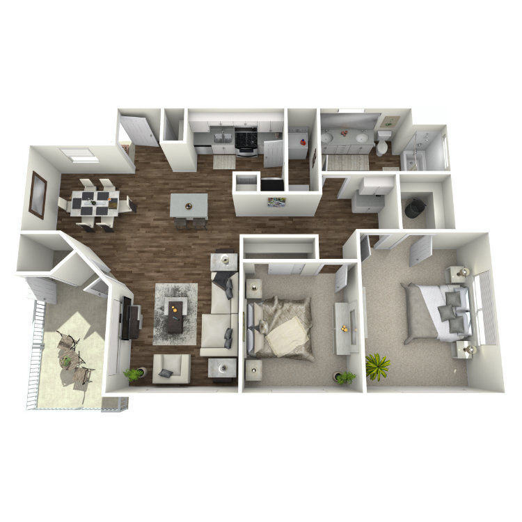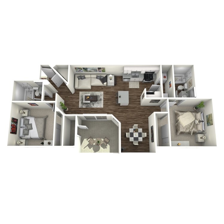 Apartment Model: Plan 3From $2,5002 Bedroom, 1 Bath, 987 sq ftAvailable Now![]()