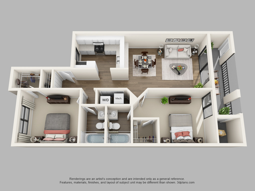 2 Beds, 2 Baths, 1000 sq ftAvailable NowModel Gallery