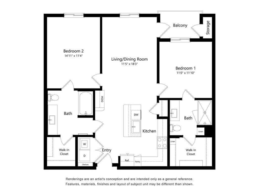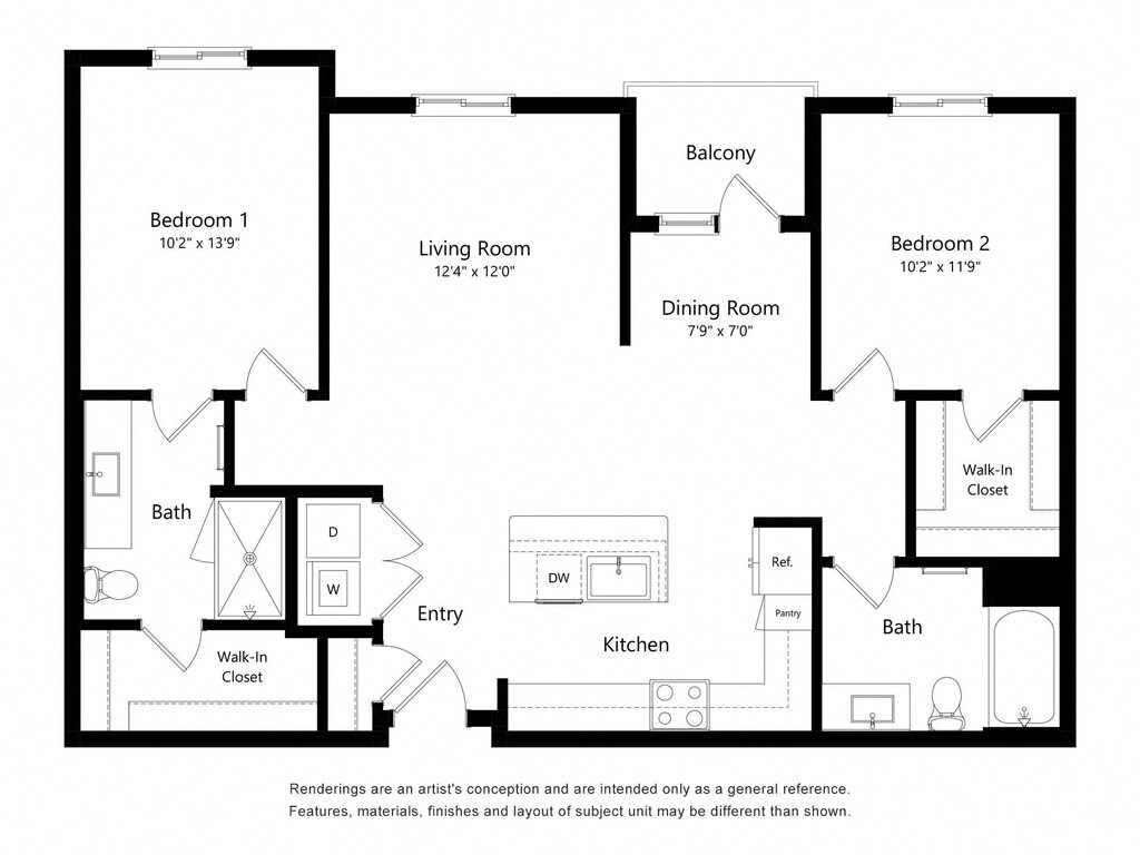A2 - Floorplan 1 Floor plans are artist's rendering. All dimensions are approximate. Actual product and specifications may vary in dimension or detail. Not all features are available in every rental home. Prices and availability are subject to change. Base rent is based on monthly frequency. Additional fees may apply, such as but not limited to package delivery, trash, water, amenities, etc. Deposits vary. Please see a representative for details.