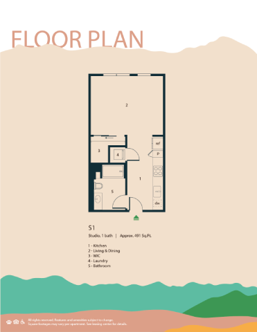 Apartment Model: S1From $2,286Studio, 1 Bath, 534-562 sq ftAvailable NowFloor plans are artist's rendering. All dimensions are approximate. Actual product and specifications may vary in dimension or detail. Not all features are available in every rental home. Prices and availability are subject to change. Base rent is based on monthly frequency. Additional fees may apply, such as but not limited to package delivery, trash, water, amenities, etc. Deposits vary. Please see a representative for details.