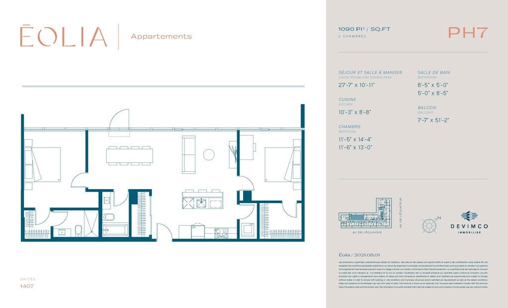 Apartment Unit: 1407Apartment Model: PH7$3,6153 Bedroom, 2 Bath, 1090 sq ftAvailable Now