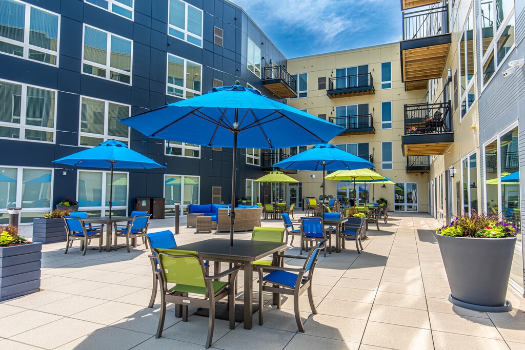 Solaris on Main, a T. Wall Urban Village®, are conveniently located apartment homes in downtown Neenah on Little Lake Butte des Morts. Located on the corner of Main Street and Millview Drive, Solaris on Main offers amazing views over Arrowhead Park and Little Lake Butte des Morts which are both just steps away, and a wide variety of amenities! Get your work out in our on-site 24/7 Fitness Center. Enjoy a game of billiards or darts in our tastefully furnished community room. Lounge, grill out, and entertain on our beautiful outdoor Plaza or relax in our 3-season hot tub!