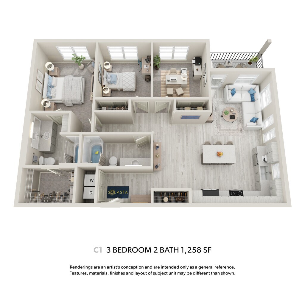 C1 - Floorplan 9 Apartment Unit: 1410Apartment Model: C13 Bedroom, 2 Bath, 1258 sq ftAvailable NowApartment Unit: 5210Apartment Model: C13 Bedroom, 2 Bath, 1258 sq ftAvailable December 6, 2025