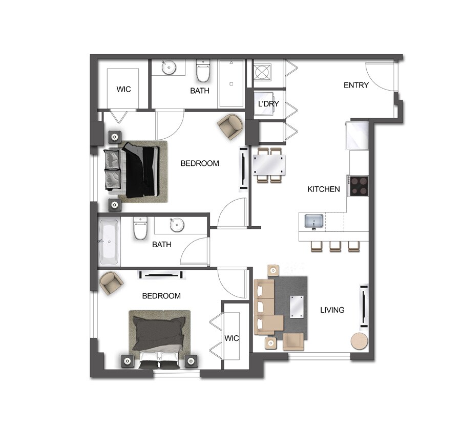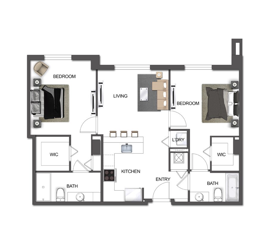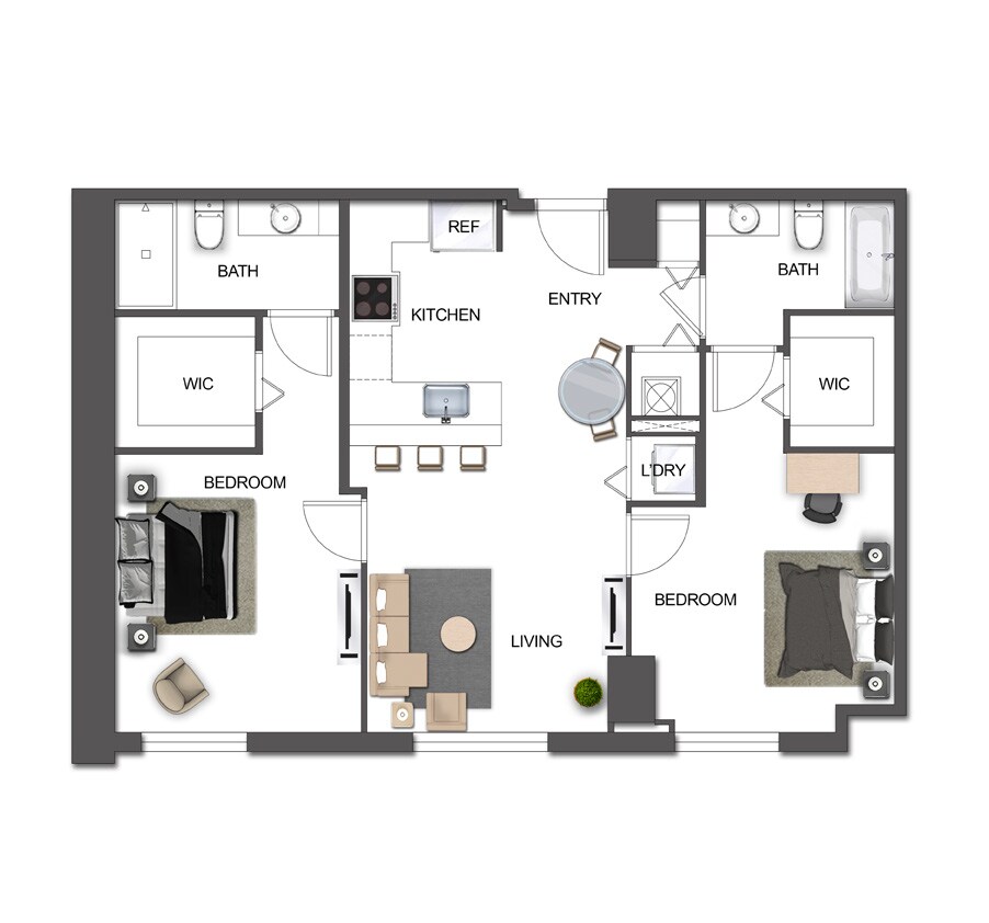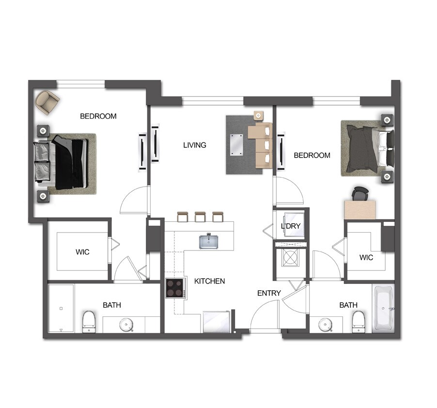1 Bed, 1 Bath, 804 sq ftAvailable NowModel Gallery
