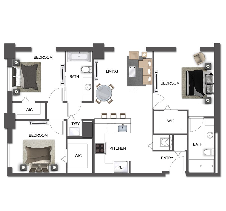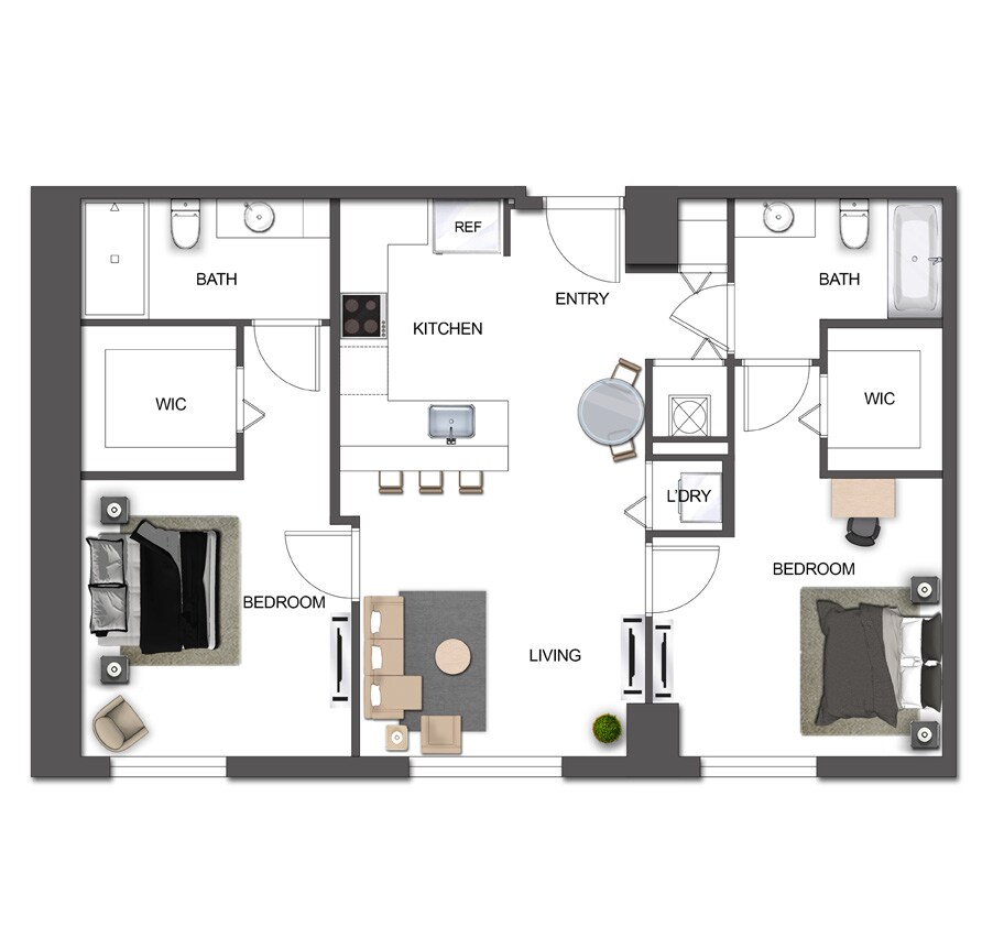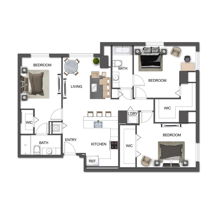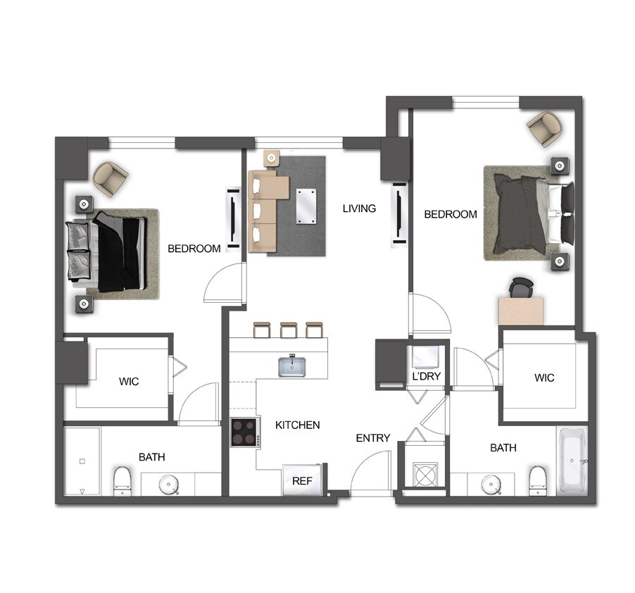 1 Bed, 1 Bath, 804 sq ftAvailable NowModel Gallery
