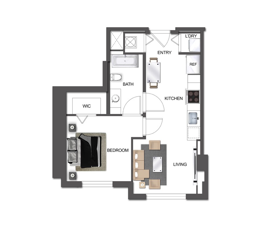 Apartment Model: A1From $2,6591 Bedroom, 1 Bath, 526 sq ftAvailable Now![]()
