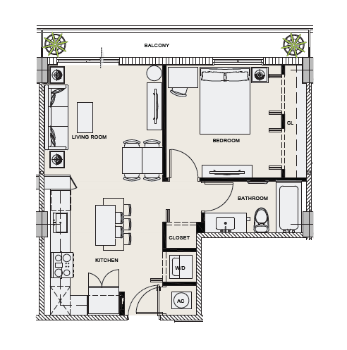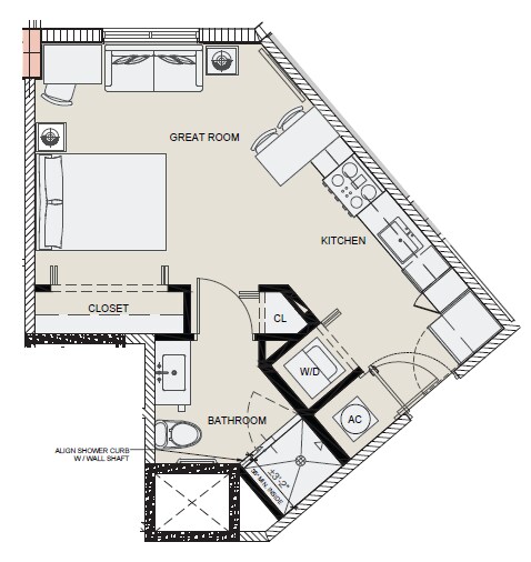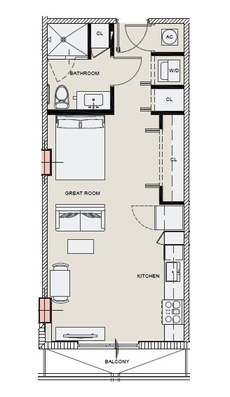 Studio, 1 Bath, 490 sq ftAvailable NowModel Gallery