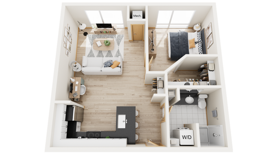 Apartment Model: Foshay$1,429Studio, 1 Bath, 477 sq ftAvailable August 27, 2026![]()