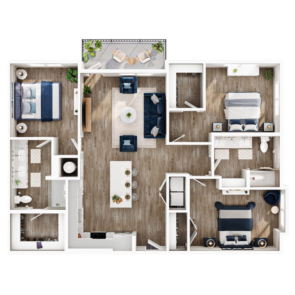 Solis Birkdale offers 1 to 3 Bedroom apartments starting from $1,705 and having 750–1,442 sq ft. Here is the current pricing and availability: