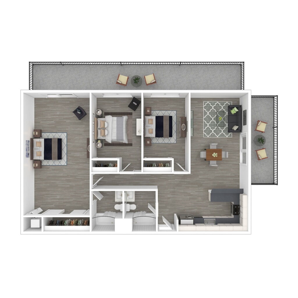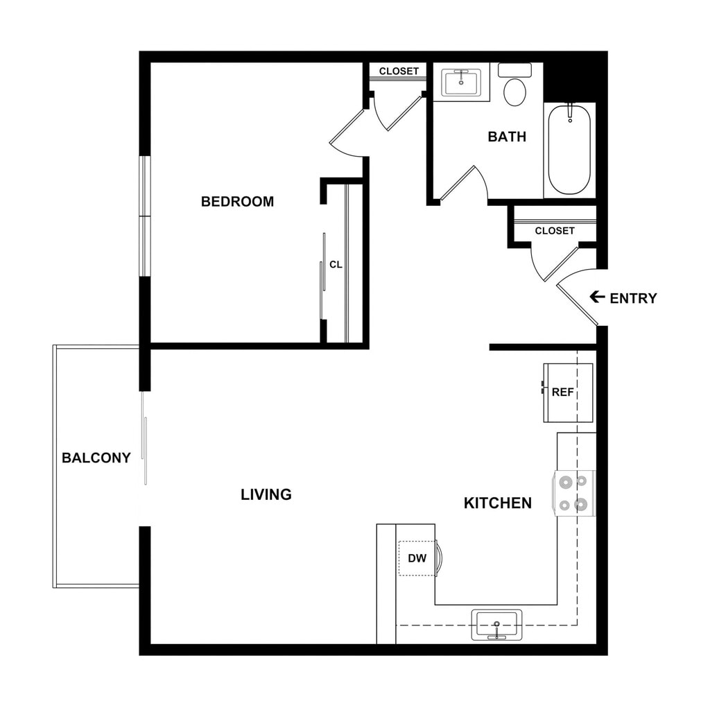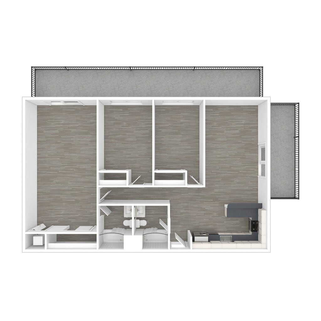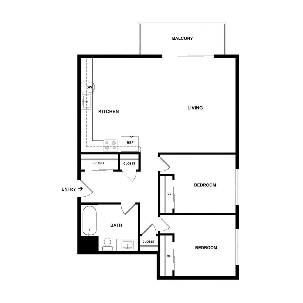 1 Bedroom - Floorplan 3 2 Bedrooms