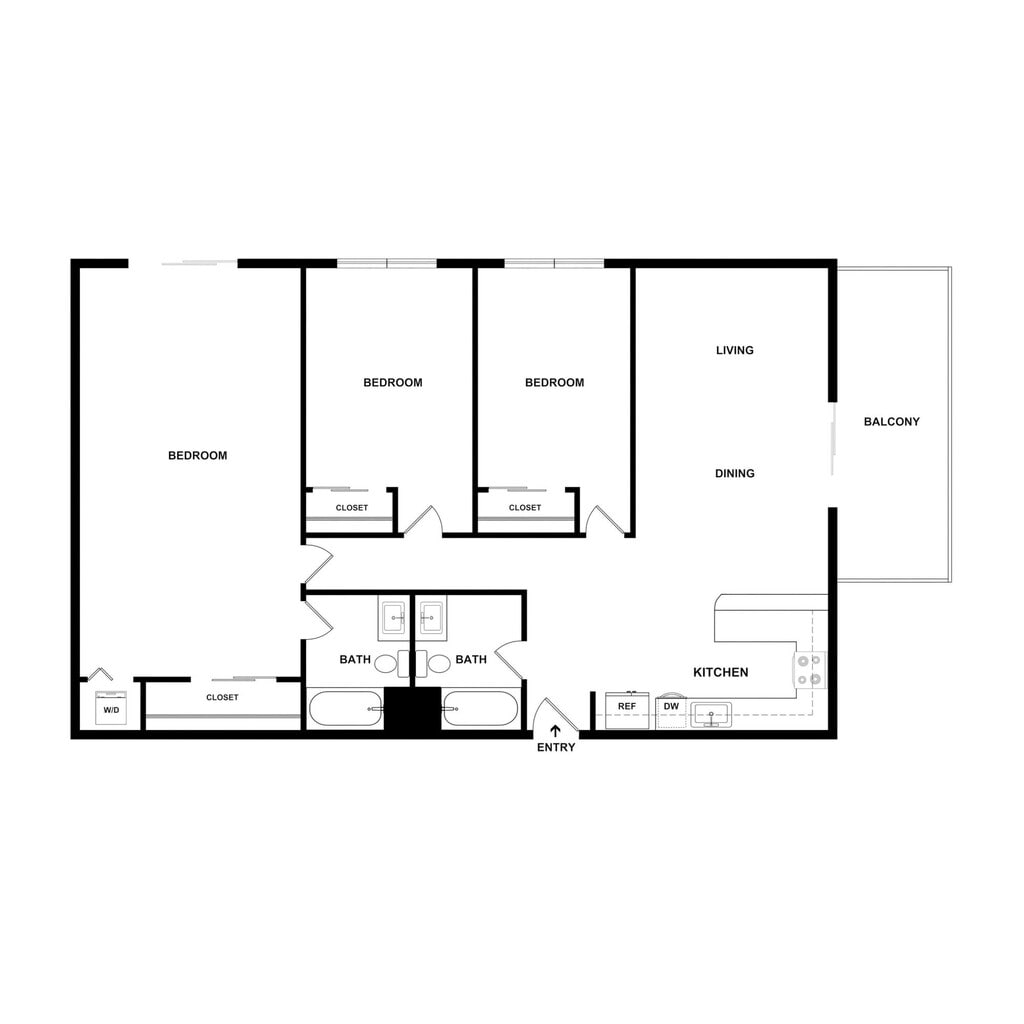 2 Bedroom - Floorplan 3 3 Bedrooms