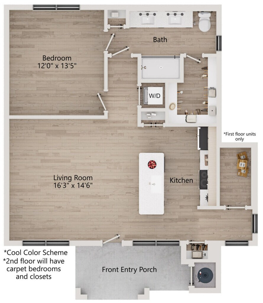 1 Bed, 1 Bath, 695 sq ftAvailable January 8, 2026Model Gallery