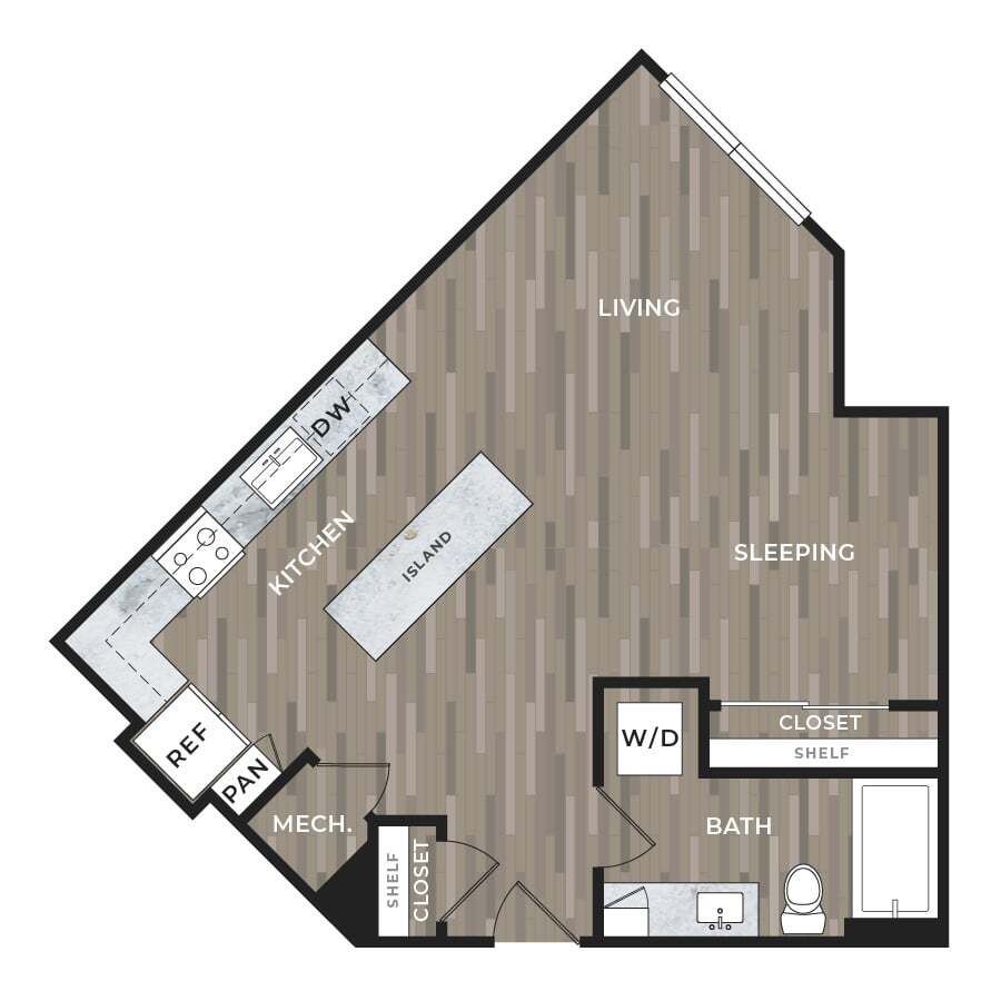 Studio, 1 Bath, 576 sq ftAvailable NowModel Gallery