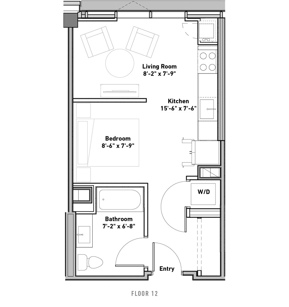 S7 - Floorplan 1 Apartment Unit: 0710Apartment Model: S7$2,382Studio, 1 Bath, 616 sq ftAvailable NowFloorplan S1