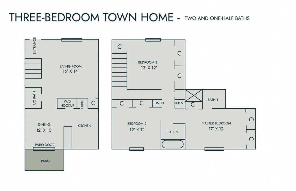 Apartment Model: Three BedroomFrom $9793 Bedroom, 2.5 Bath, 1120-1540 sq ftUnavailable![]()