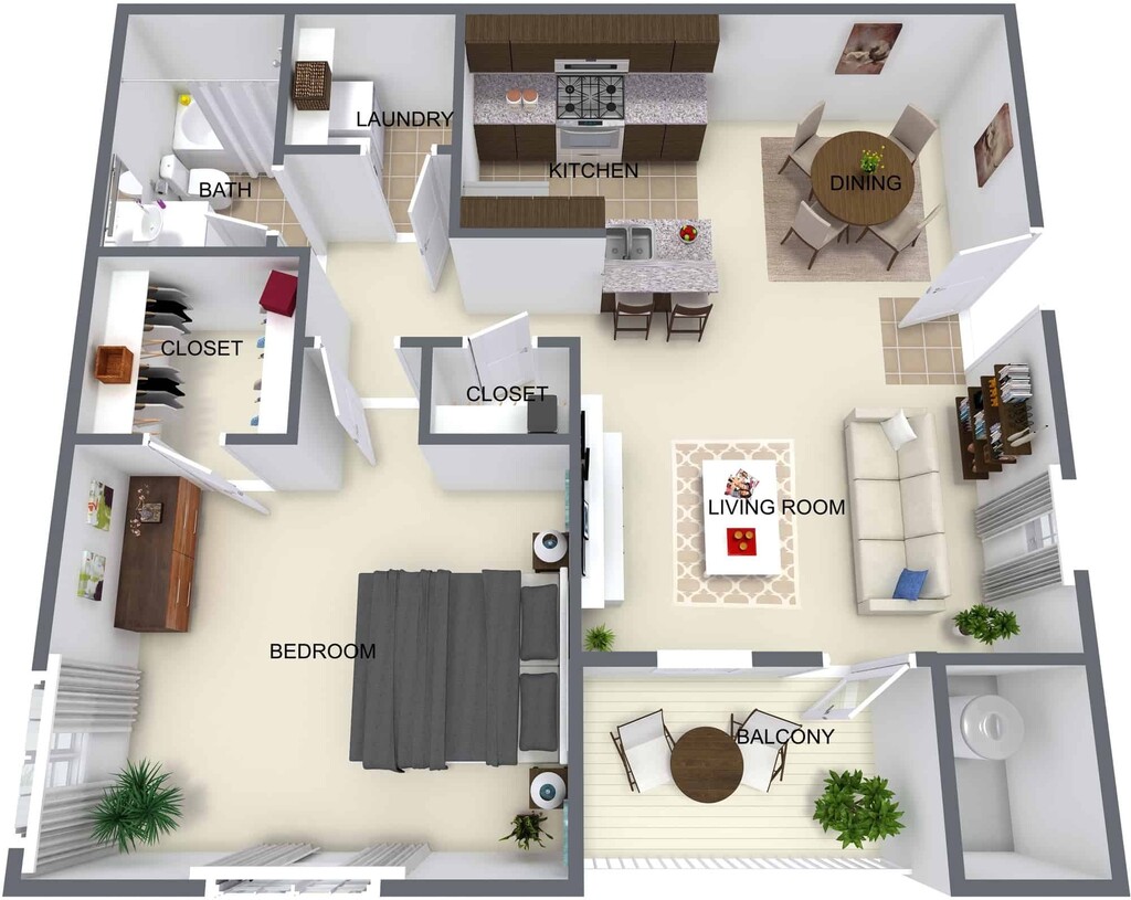 1 Bed, 1 Bath, 761 sq ftAvailable NowModel Gallery