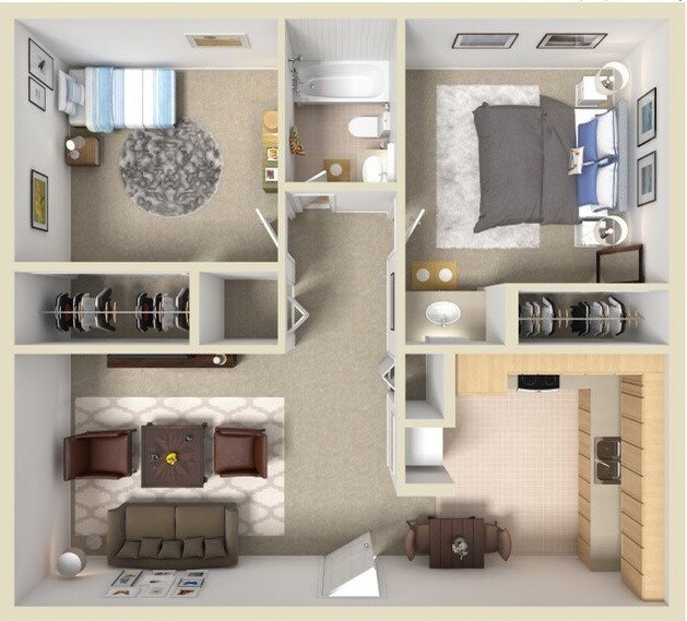 1 Bed 1 Bath - Floorplan 8 2 Bedrooms