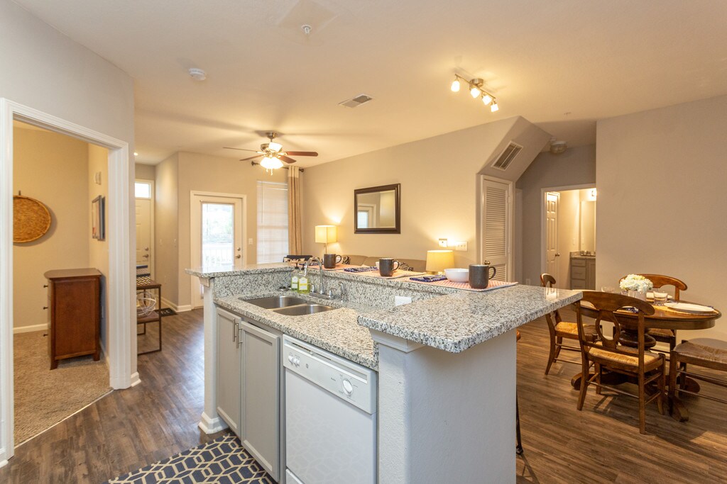 August 2, 2015The neighborhood is safe and quiet. My husband and I love the easy access to the interstate and the pet accommodations. We live just beside a stream that we can hear from our balcony. The staff is amazing and the grounds are well-kept. They even have a dog park, a gym, a pool and a car wash. The details indoors are also great with granite countertops, high ceilings and crown molding. Truly a great bang for our buck!Review from Apartments.com