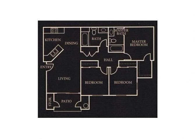 Two Bedroom - Floorplan Apartment Unit: 7108Apartment Model: Two Bedroom2 Bedroom, 2 Bath, 911 sq ftAvailable Now3 Bedrooms