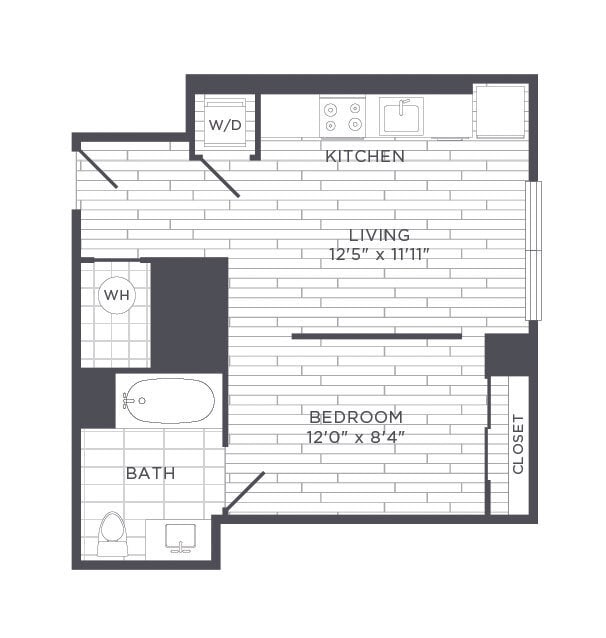 Studio, 1 Bath, 480 sq ftAvailable NowModel Gallery