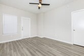 - Wood-style plank flooring
