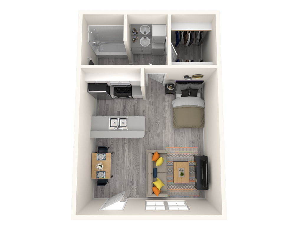 Studio, 1 Bath, 416 sq ftAvailable NowModel Gallery