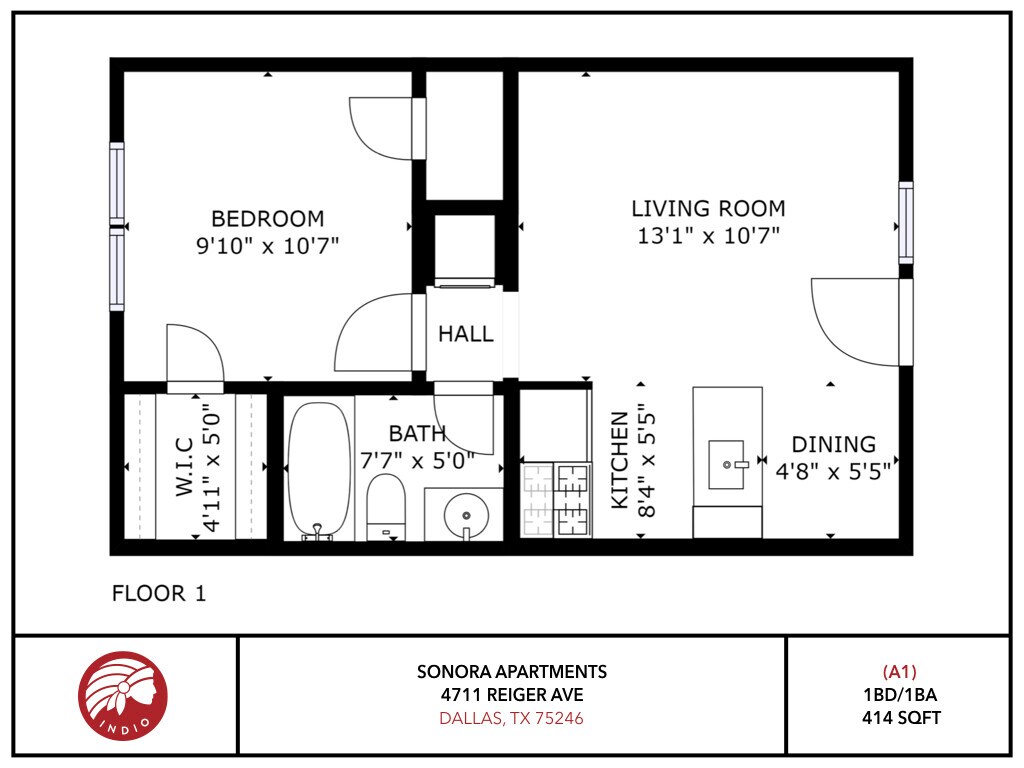 1 Bed, 1 Bath, 414 sq ftModel Gallery