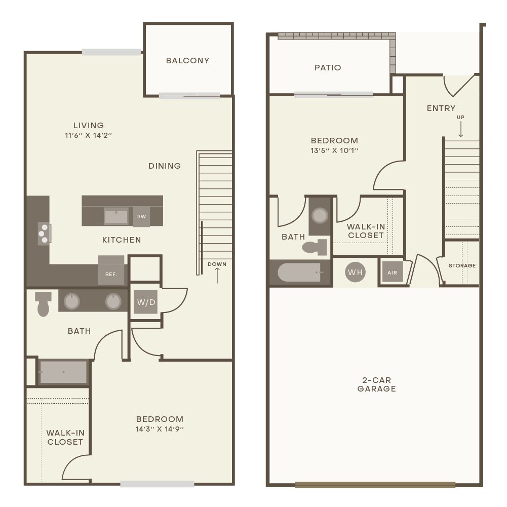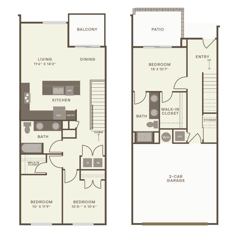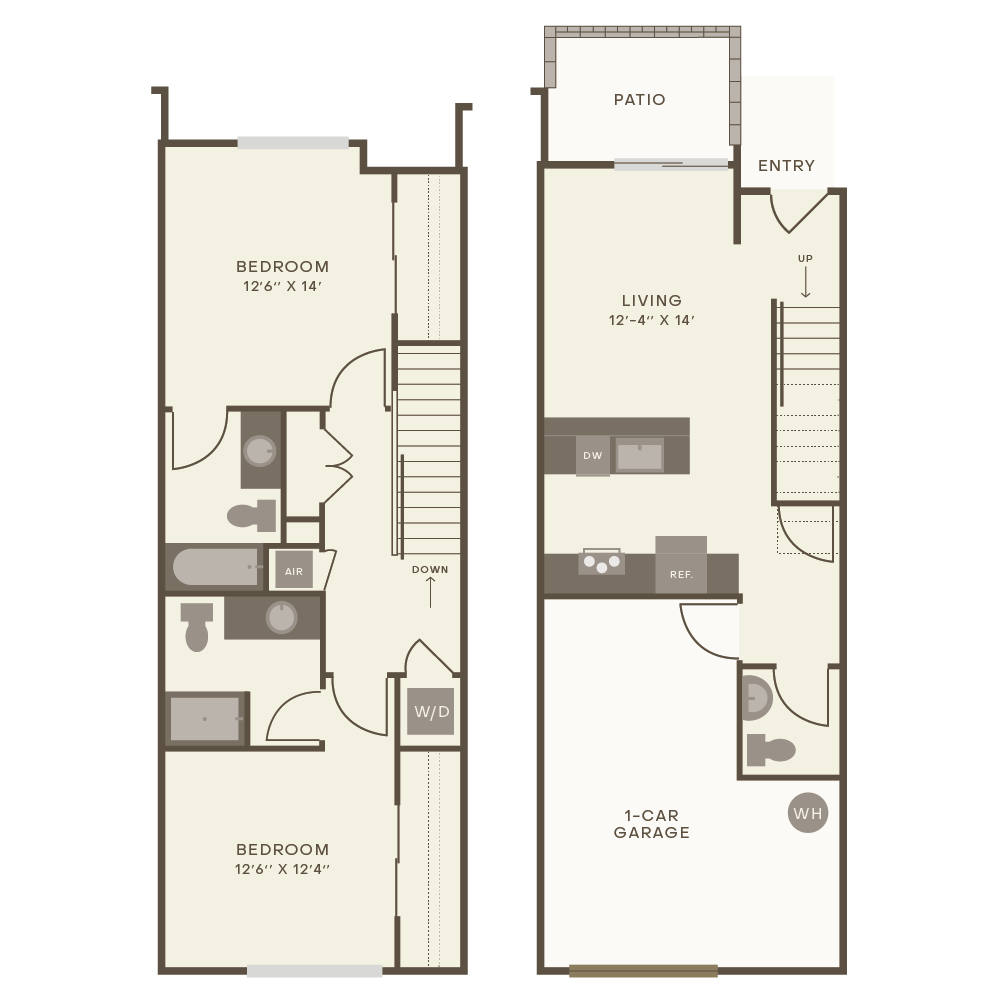 2 Beds, 2.5 Baths, 1264 sq ftAvailable NowModel Gallery