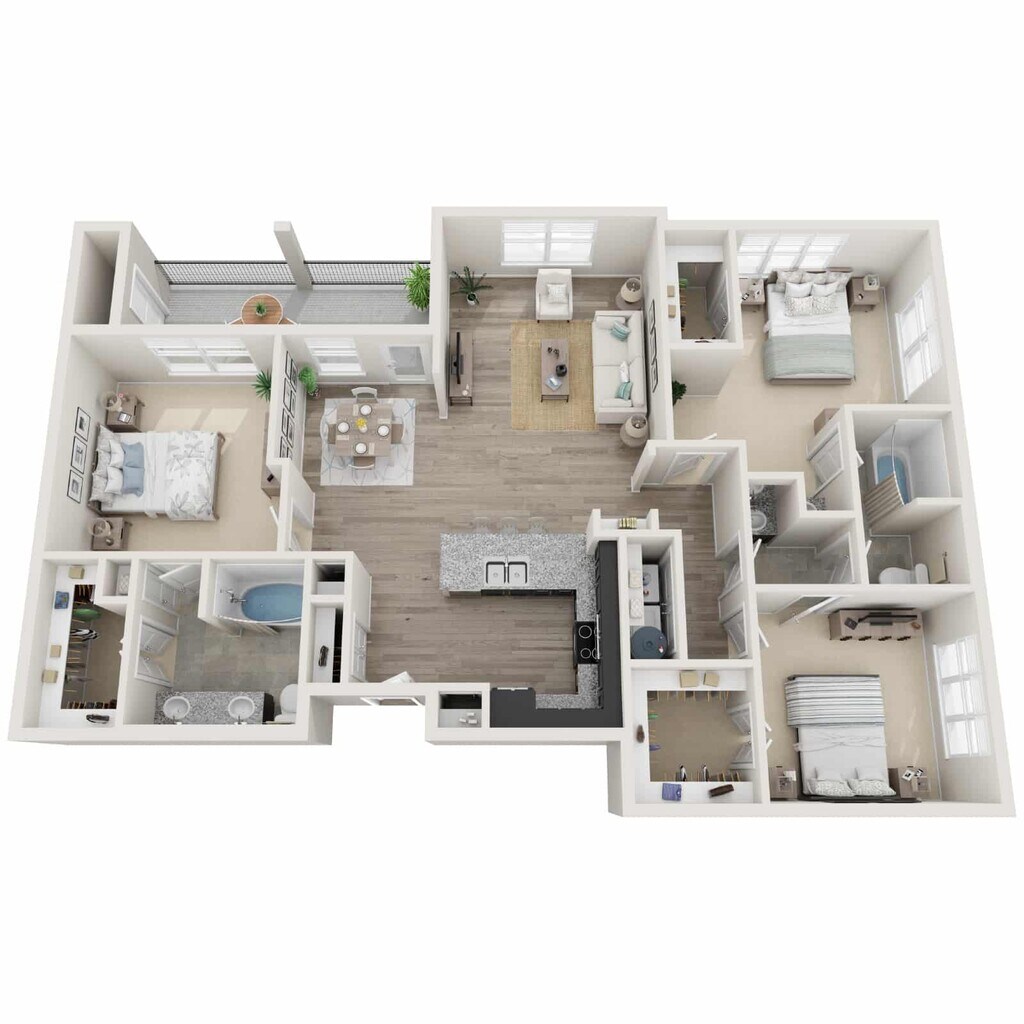 - 3 Bedrooms- Floorplan C1- $1,8453 Beds, 2 Baths, 1469 sq ftAvailable Now- Model Gallery- Floorplans- Availability Details- Price - Availability Date - Unit - Sq Ft - $1,845 - Available Now - C1 - 1469 - Unit C1 Amenities and Features- Features- Air Conditioning