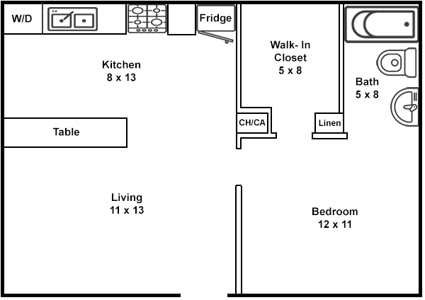 Apartment Model: 1 bedroom, 1 bathroom$8001 Bedroom, 1 Bath, 500 sq ftUnavailableFloorplansPhotos![]()