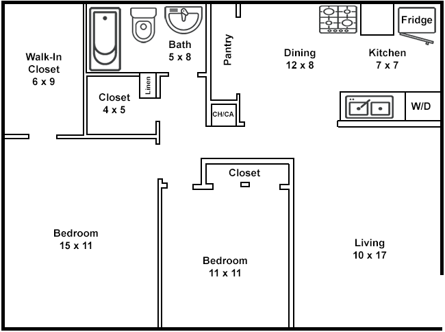 Price Availability Date Unit Sq Ft $925 Call for Availability 2 bedroom, 1 bathroom 800 sq ft Model Amenities and Features