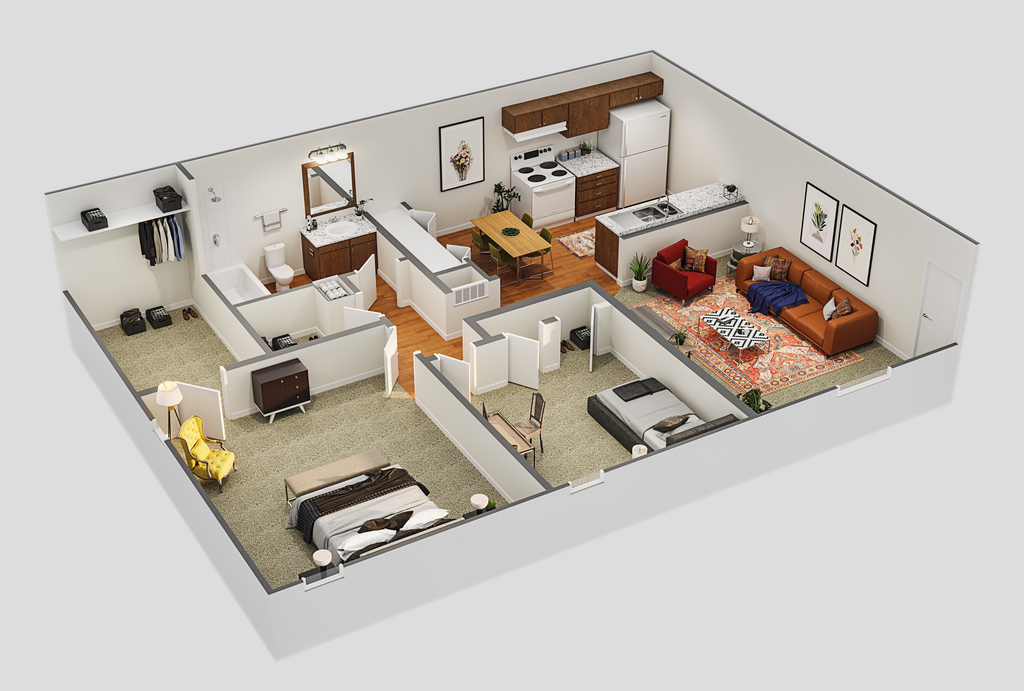 2 Beds, 1 Bath, 800 sq ftModel Gallery
