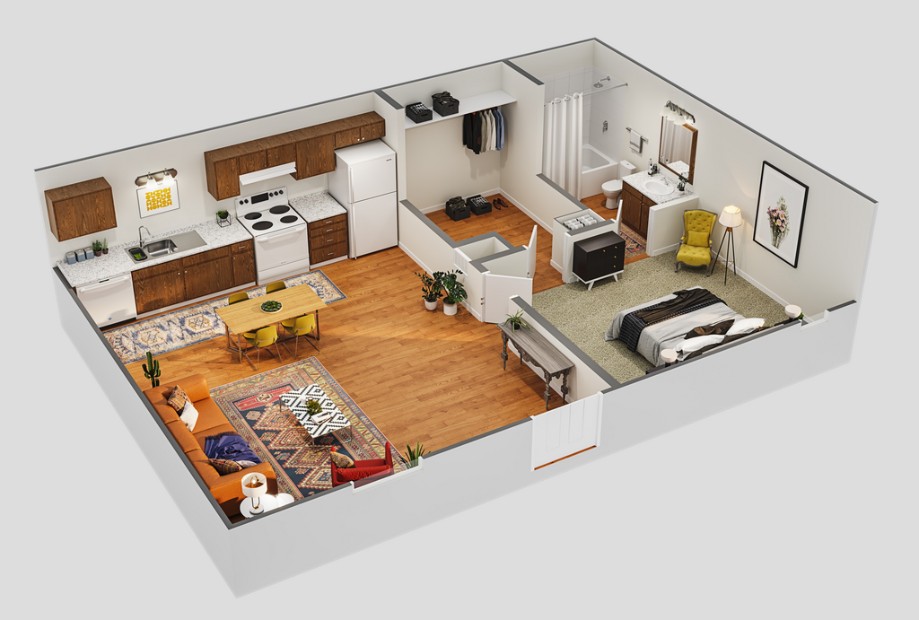 1 Bed, 1 Bath, 500 sq ftModel Gallery