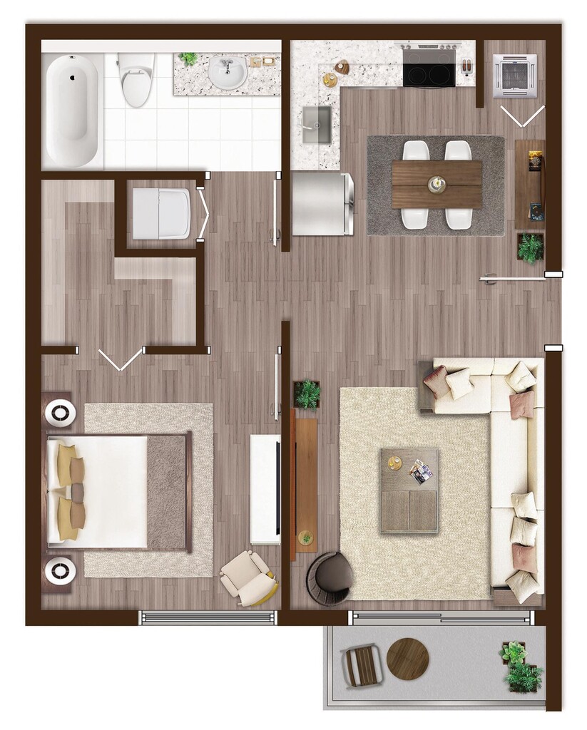 1 Bed, 1 Bath, 620 sq ftAvailable NowModel Gallery