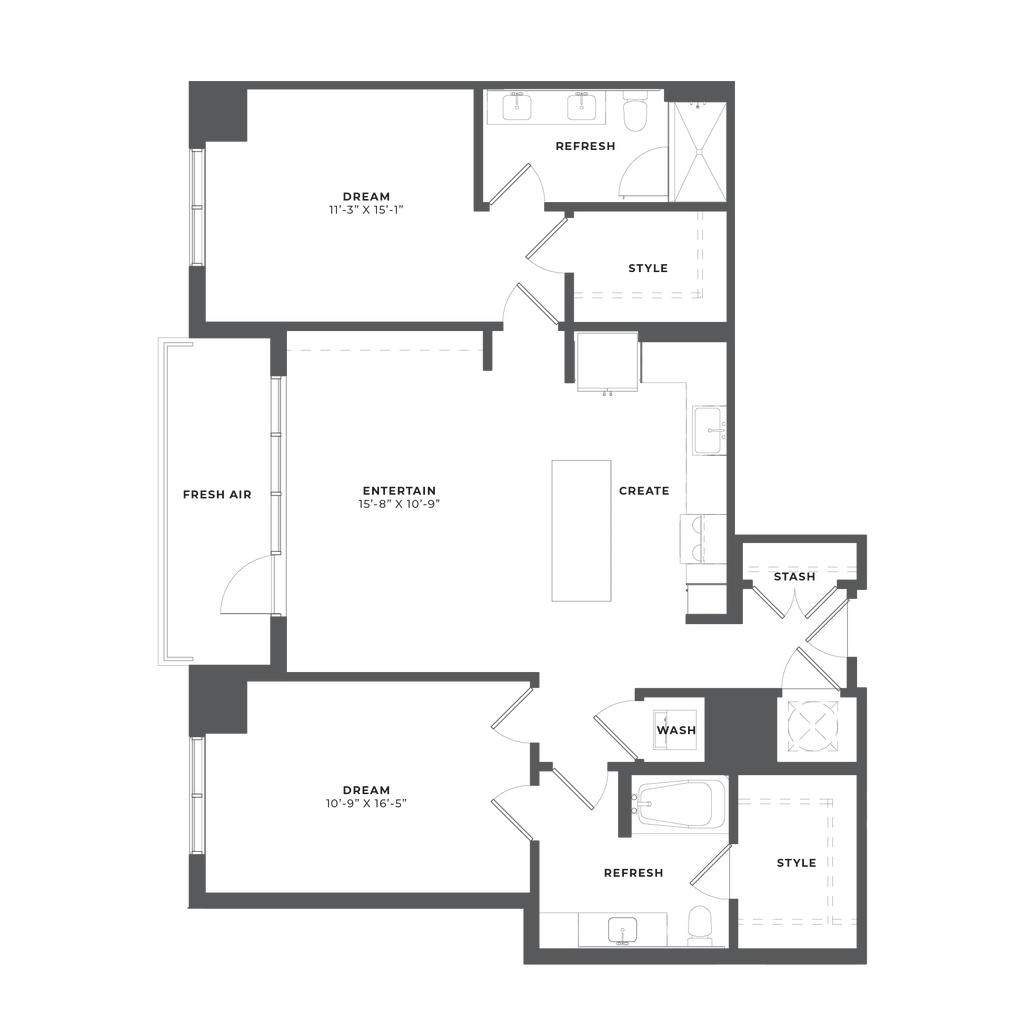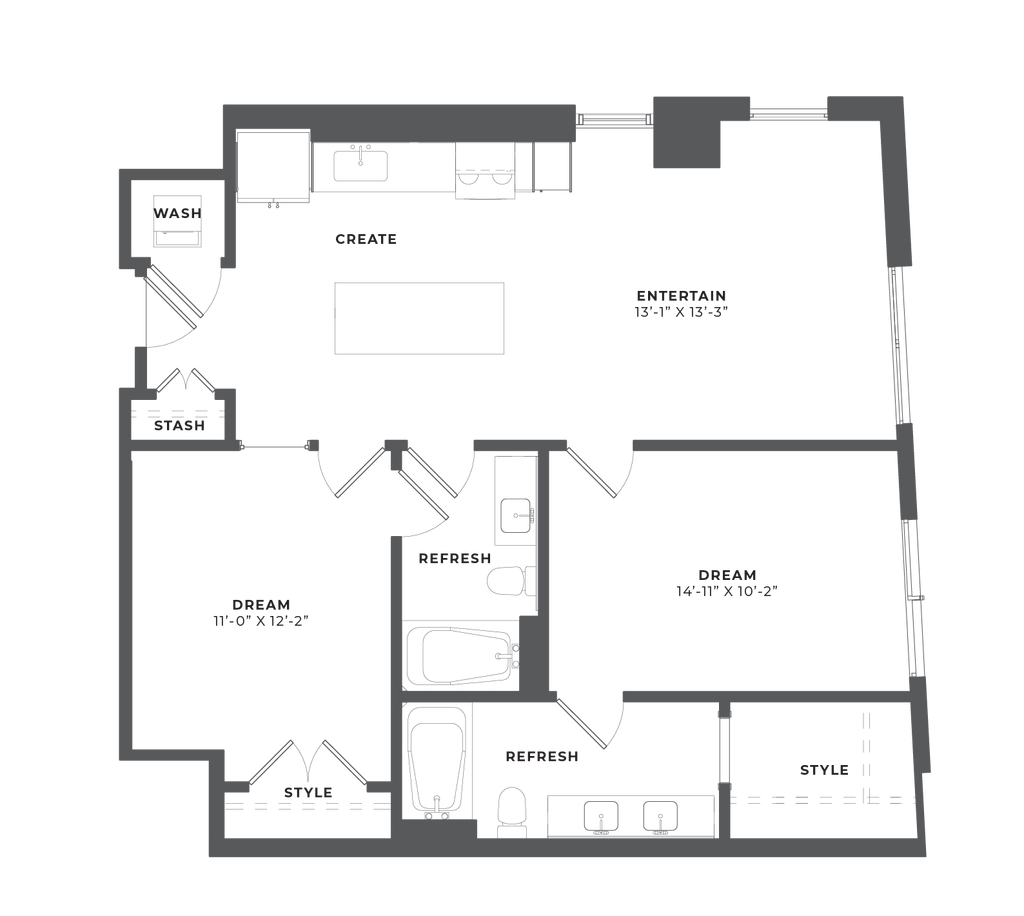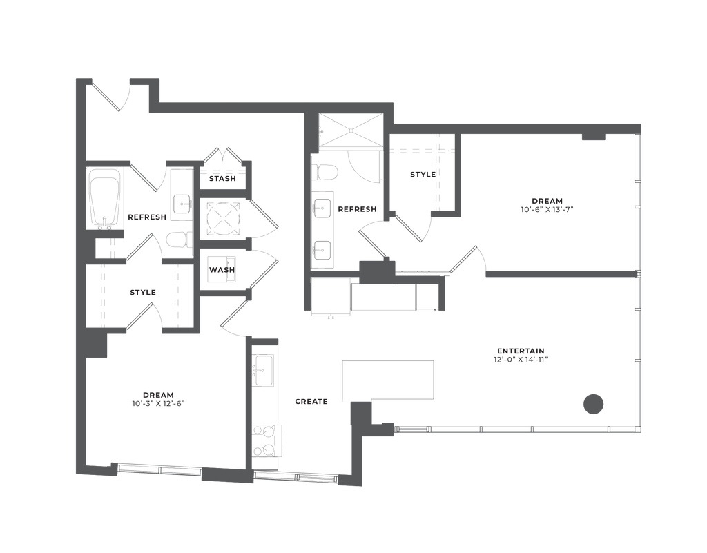 1 Bed, 1 Bath, 667 sq ftAvailable NowModel Gallery
