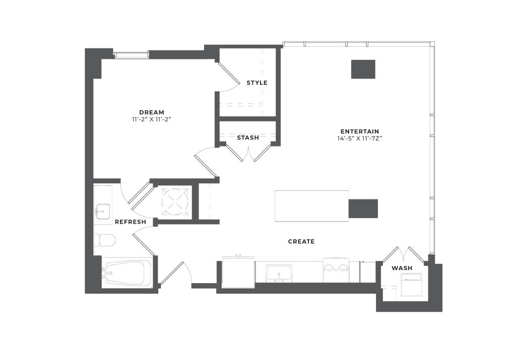 Studio-S4 - Floorplan 1 Apartment Unit: 0905Apartment Model: Studio-S4$2,010Studio, 1 Bath, 542 sq ftAvailable November 19, 20251 Bedroom